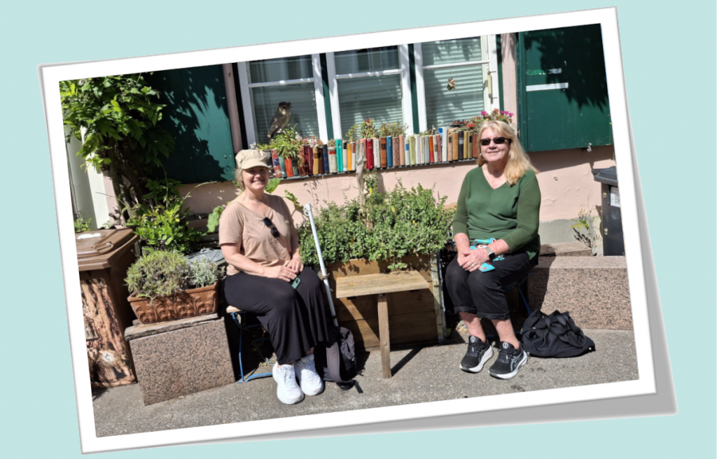 Entsprechend unserer Bitte hat sie uns auch viele kleine Gassen und (Hinter-)Höfe gezeigt. In einer Gasse hat sie uns erzählt, dass dies die „Schlüpfergasse“ ist und warum sie so heißt. Nachmittags sind wir nochmal – durch Zufall – in diese Gasse gekommen und haben eine Veränderung festgestellt. Jemand hatte zwischen den Bäumen Leinen gespannt und Wäsche aufgehängt. Quer zur Gasse war eine Leine komplett mit Schlüpfern bestückt. Nicht mit modischen Unterhosen, sondern mit farbigen Schlüpfern und dies mit einer besonderen Falttechnik, damit die guten Stücke nicht gleich auffielen. Uns hat dieser Anblick ein Lächeln ins Gesicht gezaubert und wir werden ihn immer mit dem „Iris-Greet“ in schöner Erinnerung behalten. Uns hat der Greet mit Iris viel Spaß gemacht.